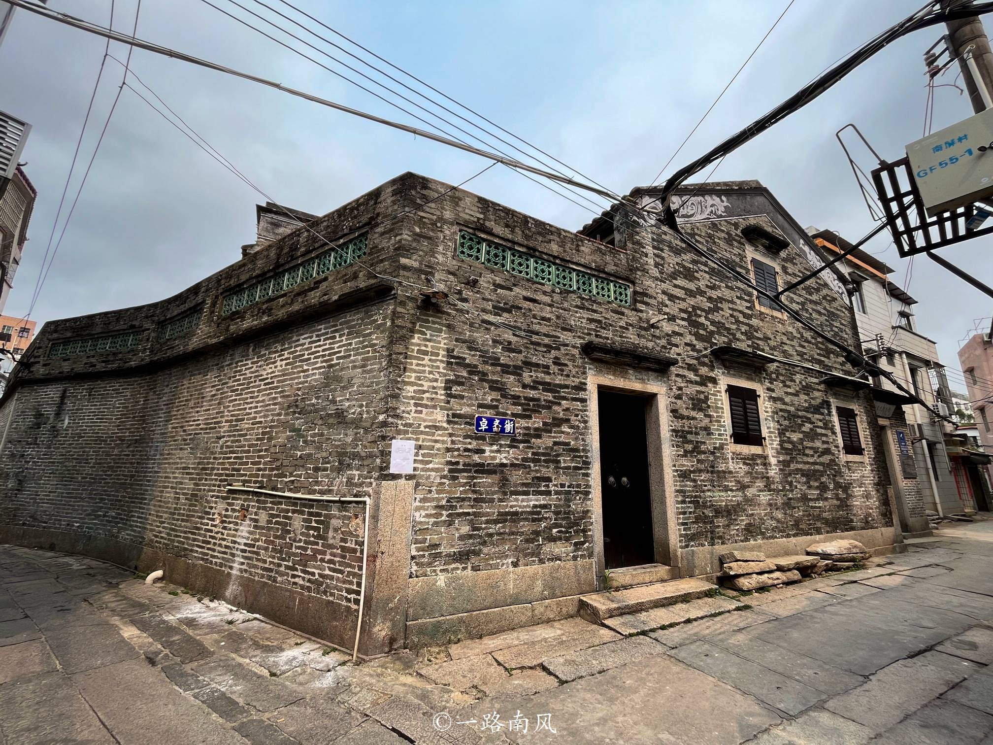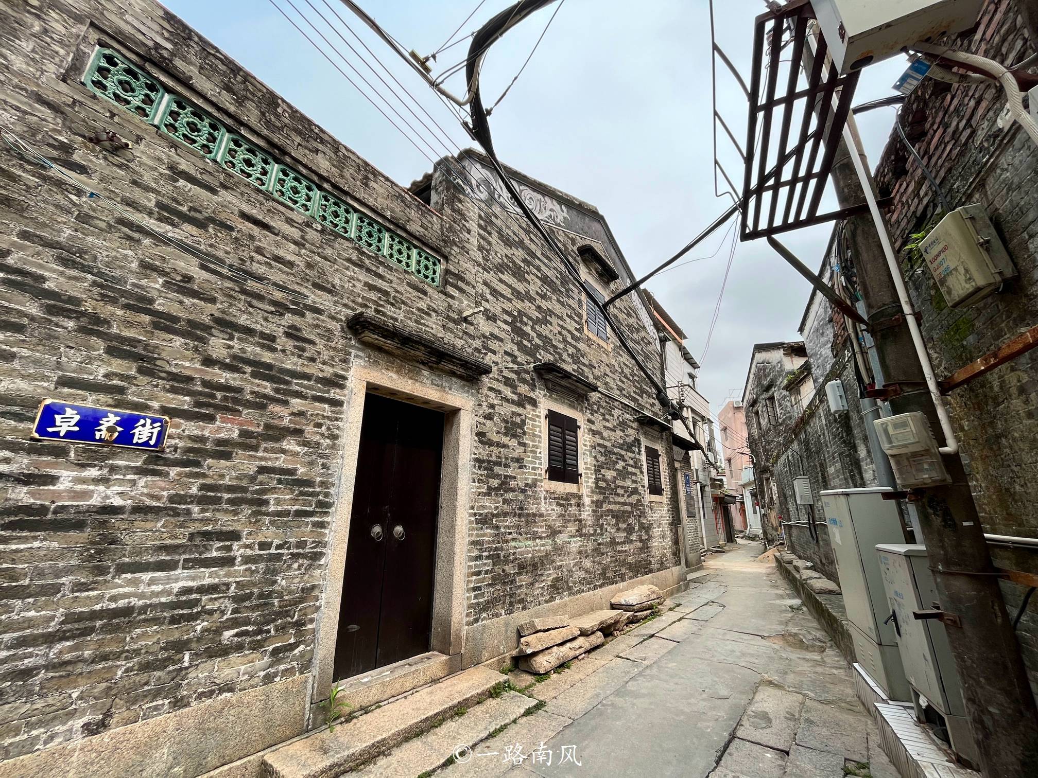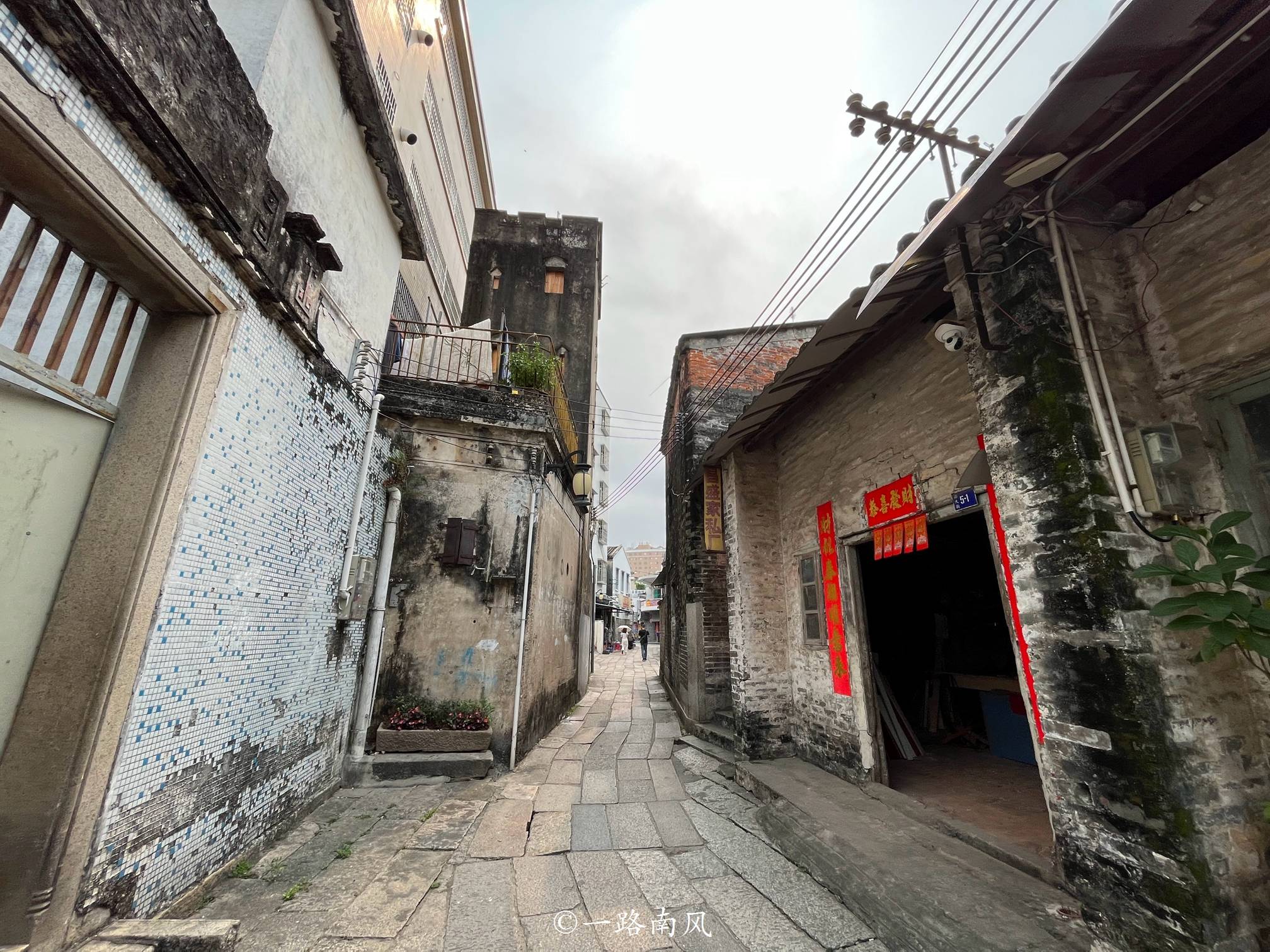 南屏老街的老建筑很多,大部分保留了清末到民初时期的风貌,周边还有一些上世纪中后期和21世纪初建造的民居,最早吸引我们目光的是一栋被雨水冲刷得外墙泛黑的碉楼。