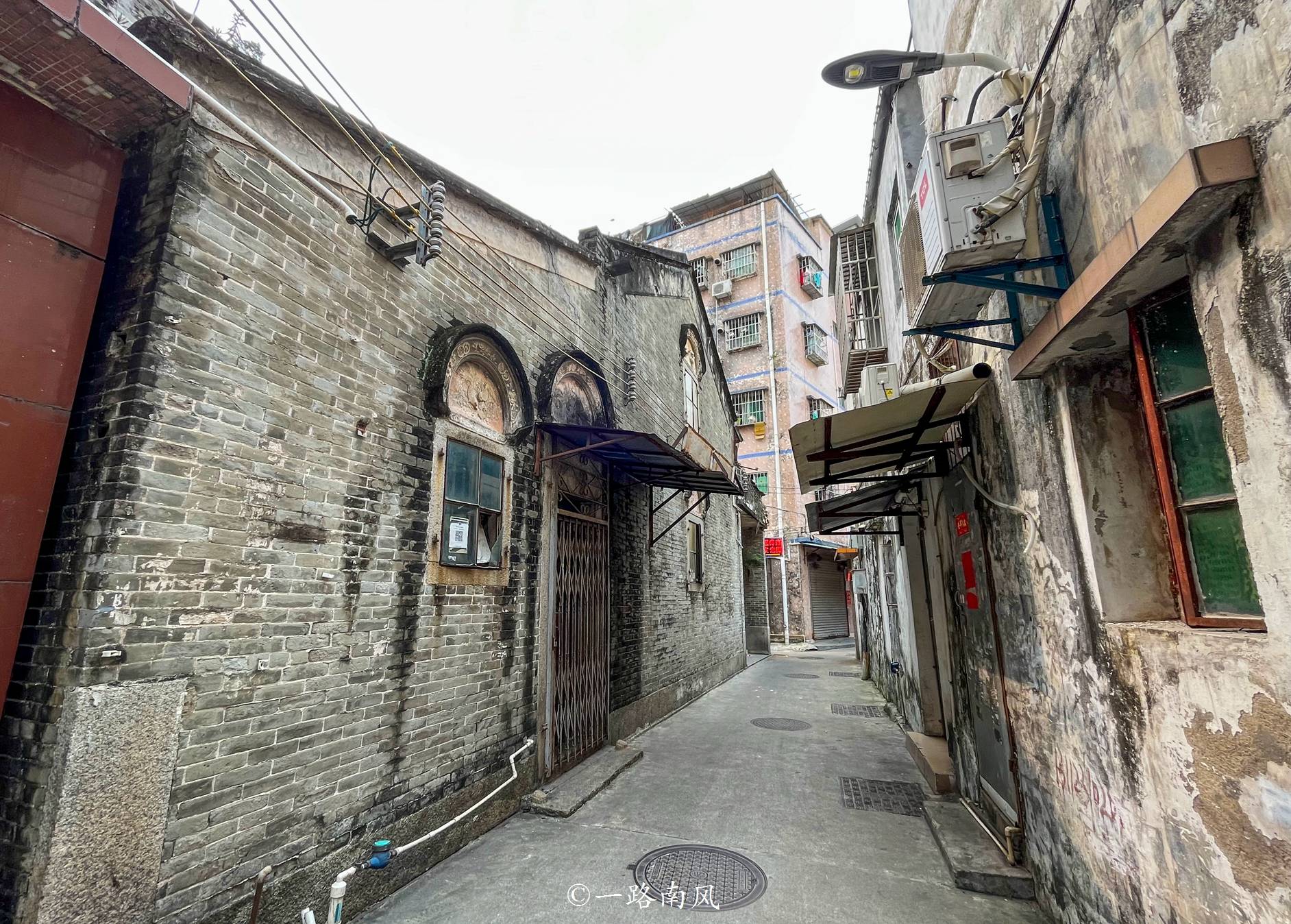 南屏的历史建筑大多数由青砖砌就,具有浓郁的岭南特色,细节处又总能看到中西合璧的地方。