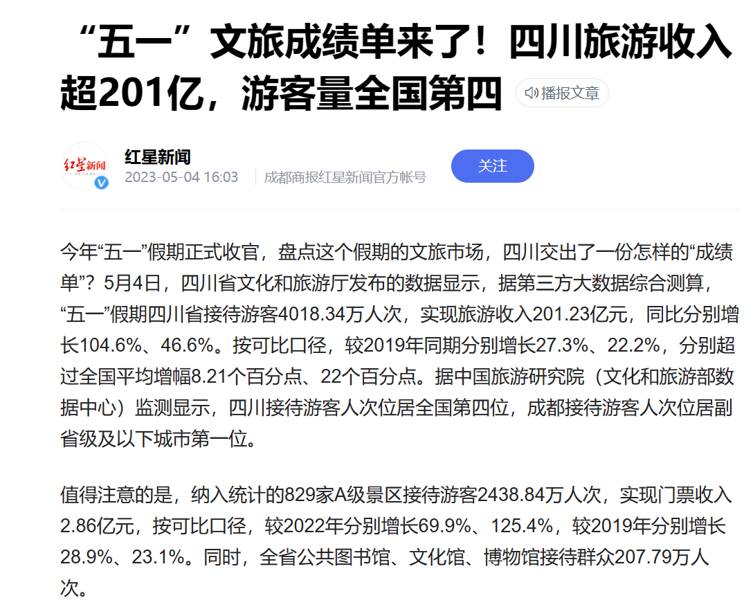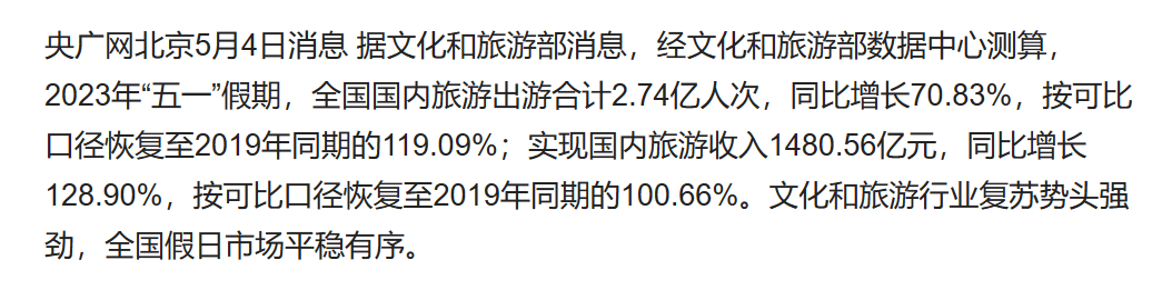 当然,按两省文旅局的官宣口径,2023年两省五一旅游都“赢麻了”,全都取得了至少20%-35%的增长。至于到底赢没赢,当地的旅游从业者应该更清楚。