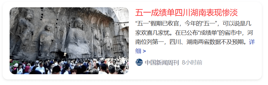 各地的五一旅游成绩单继续公布,可谓“几家欢乐几家愁”,有的旅游大省未能取得预期成绩,于是一则“五一成绩单四川湖南表现惨淡”冲上了热搜。这让很多人感到惊讶:五一期间的最排队景点榜单,四川可是有都江堰和熊猫基地两处上榜,湖南也有五一广场、橘子洲景区和凤凰古城三处上榜。