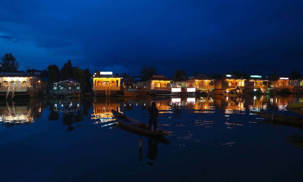 印控克什米尔天气向好,达尔湖夜景美如画卷。