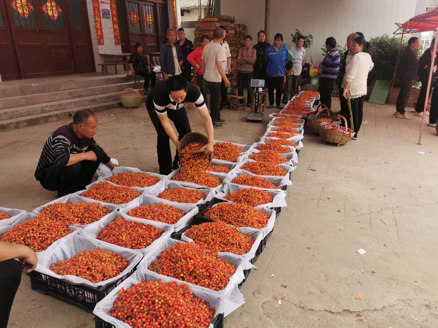 “这里的樱桃产自高山峡谷,光照时间长、昼夜温差大,施有机肥,纯天然、无公害,个大、色艳、汁多、口感好,颇受城市居民欢迎。”湖北武汉果商侯老板介绍,我们每年的这个季节都要到这儿收购鲜樱桃,每斤大樱桃13—20元、小樱桃5—7元,当天收购当天发货,第二天一早几千斤鲜樱桃就批发到市区的各大超市了,像这样的收购量可持续到五月下旬。