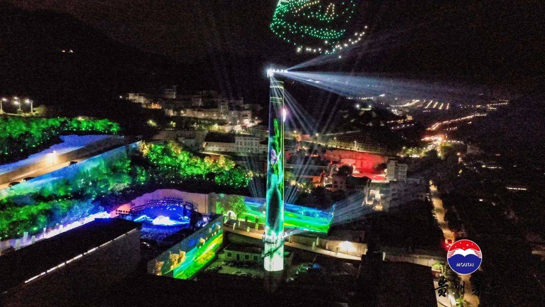 一段持续10余分钟、区域跨度2公里的“光影茅台”秀在立夏夜点亮茅台夜空,两座代表工业时代的烟囱成为夜间最酷炫的“主角”,让好山、好水、好气候的茅台又添光影文旅新地标。
