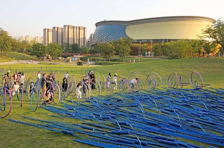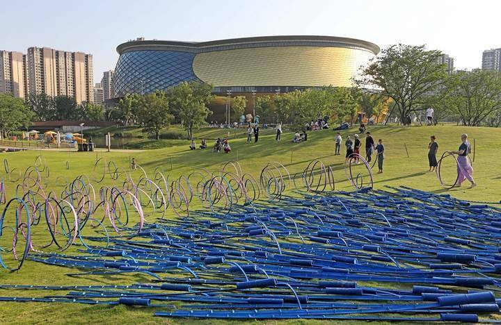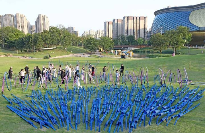 原标题:杭州:“春·笙”大地艺术装置亮相亚运公园