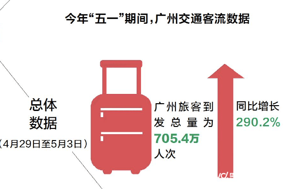 各类交通数据还反映出,“五一”假期广州旅游是真的火,无论是中心城区景点还是周边游,游客数量都大幅上涨。
