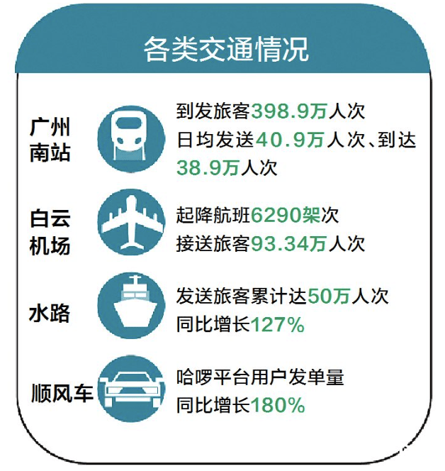 假期,广州地区累计到发旅客705.4万人次,同比2022年增长290.2%,市民游客出行热情高涨,多项交通客流数据刷新纪录。这些数据反映了怎样的出行特征?南都记者通过梳理予以呈现。