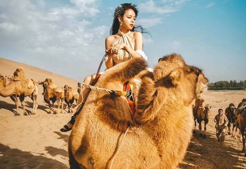 鸣沙山月牙泉:沙漠之舟,骆驼当行。既能俯瞰月牙泉也可欣赏大漠落日。