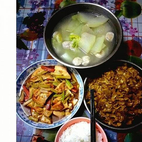 南方人的晚餐就比较简单了,一般要么简单热下中午的剩菜,或者再额外烧个素菜。有时候就干脆将中午剩下的素菜和剩饭一锅炖,煮个菜泡饭,看起来南方人的晚餐还是相对节俭简单。