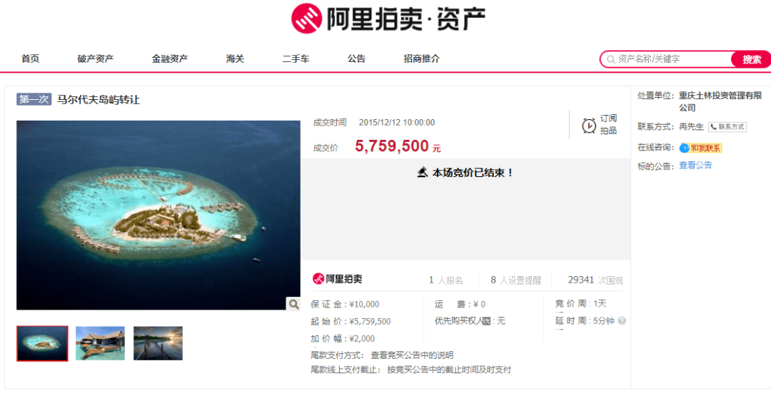 2015年12月12日,马尔代夫一处岛屿拍卖576万成交,岛主还可以获得马尔代夫长期居留签证。