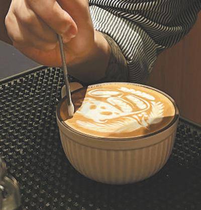 新制作好的拉花咖啡。以上图片均为本报记者靳博摄