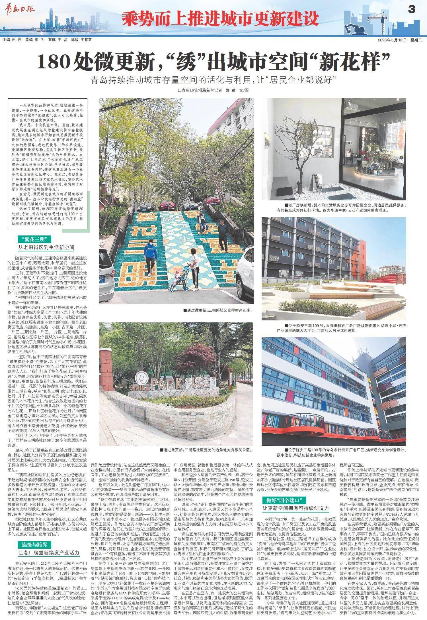 三明路社区、延安三路老旧工业楼的成功“变身”,也给青岛其他项目的“微更新”提供了经验和借鉴。但如何让这种“居民叫好”“企业说好”的微更新更多涌现,是摆在政府面前的一道必答题。