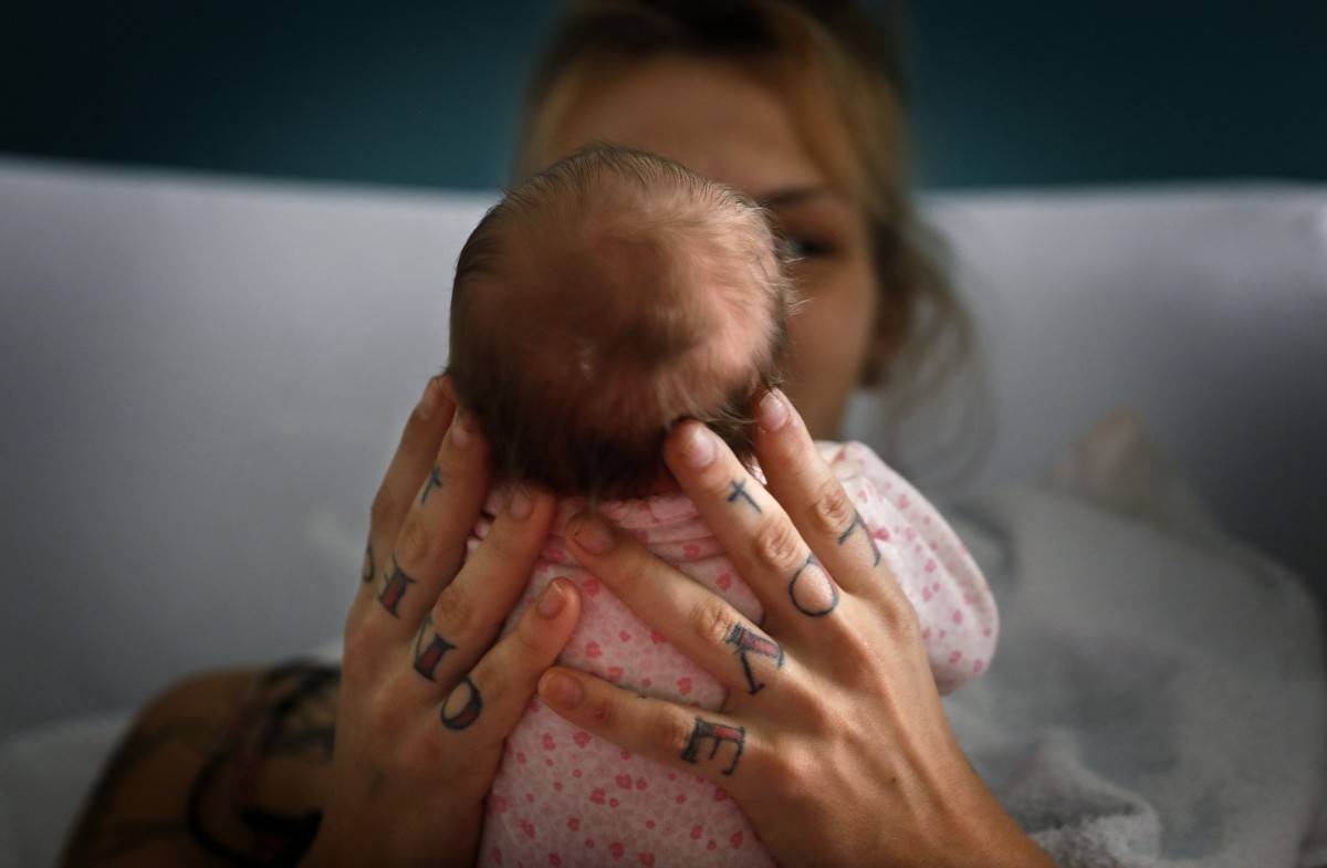 麦肯齐抱着刚出生的女儿安。