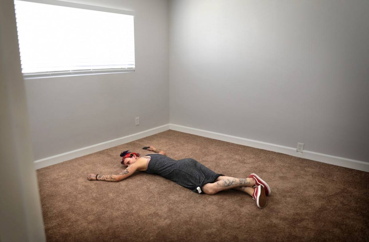 流落街头几个月后,麦肯齐通过洛杉矶的一个住房项目获得了一套公寓。她感激地躺在地板上。