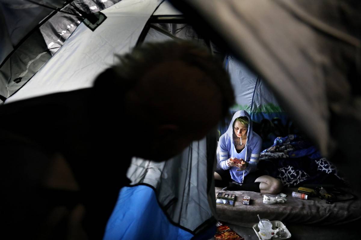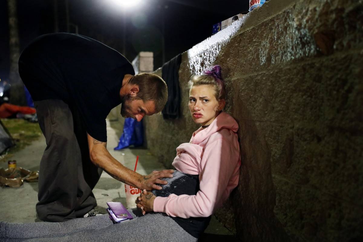 专题摄影奖【获奖者:克里斯蒂娜·豪斯】专题介绍:为了深入了解一位住在街头帐篷里的22岁孕妇的生活,这些照片显示了她努力抚养孩子但最终未能获得孩子抚养权过程中的脆弱感情。22岁的麦肯齐·特拉汉(Mckenzie Trahan)眼神直勾勾地凝视着一个方向,她26岁的男友艾迪(Eddie)把手放在她的肚子上,他们在好莱坞附近搭了个帐篷。