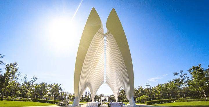 因为设计师的原理是想设计成一只风帆,预示着海棠湾能在三亚甚至在国内做出一番成绩,这点倒是和迪拜的帆船酒店的设计理念不谋而合了。当然除了预示一帆风顺之外,也是预示着这里的人对生活美好的向往。