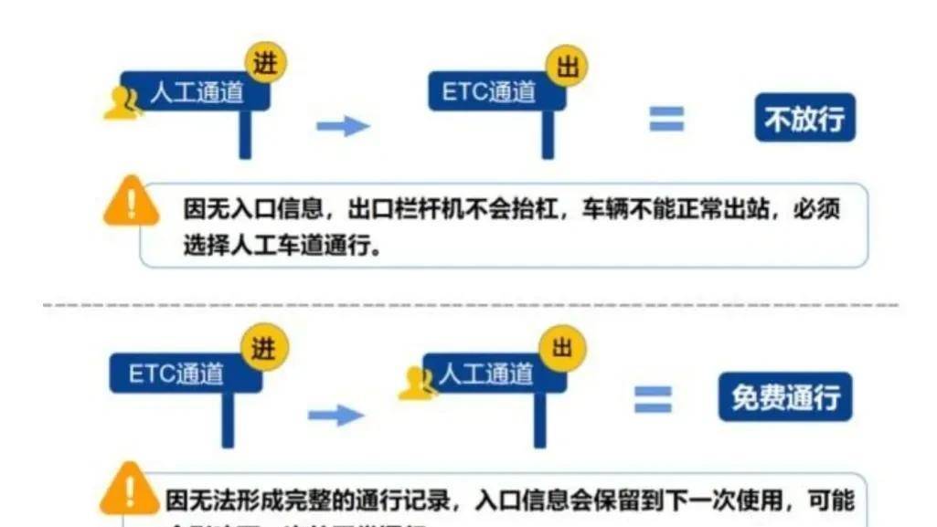 如果是ETC车辆,在上高速时如果选择的是人工通道,下高速时走ETC则无法识别,需要退回人工通道,从而造成不必要的麻烦。