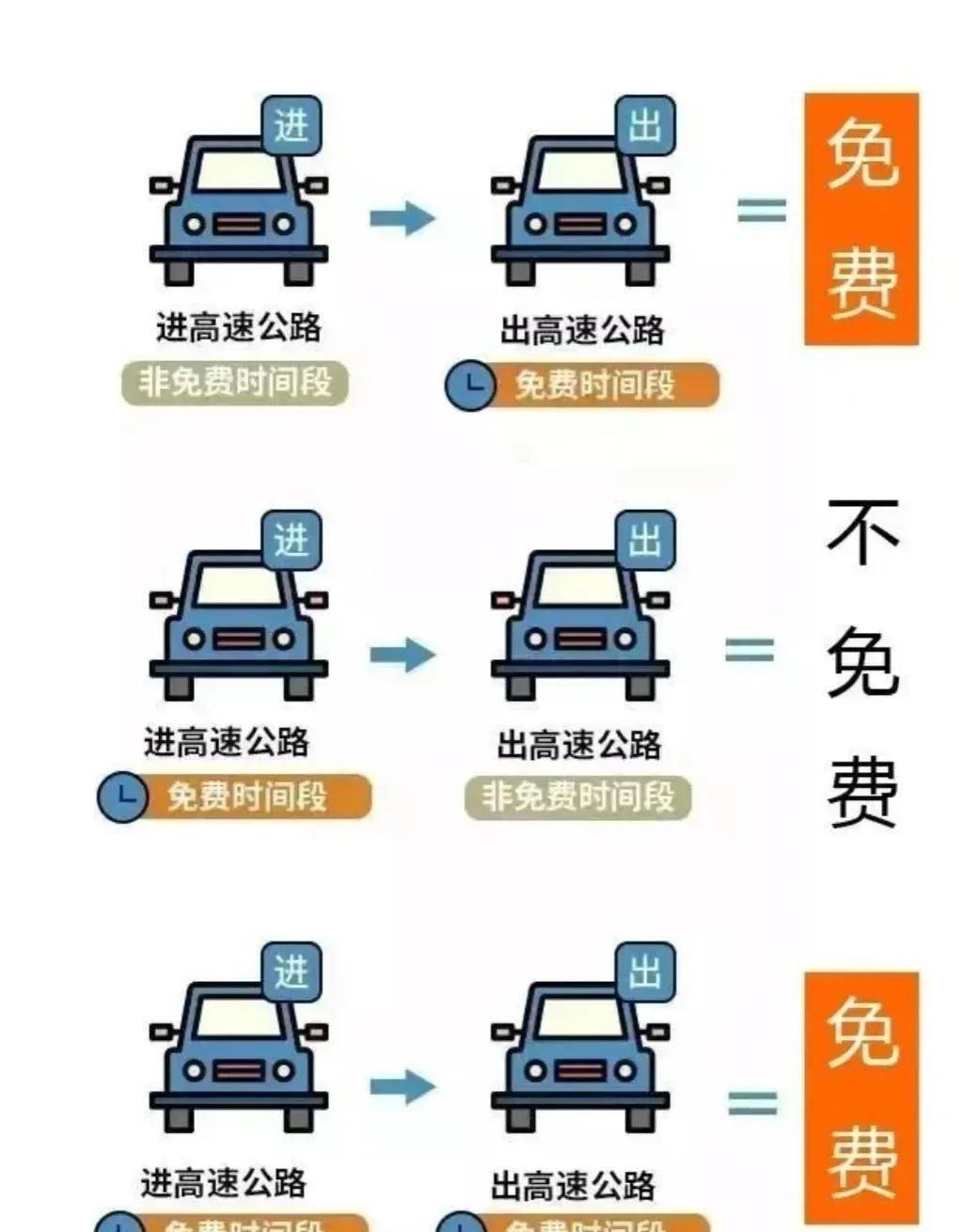 也就是说不管你是什么时间进入的高速,只要下高速的时间在免费时间段内,就可以享受免费通行。