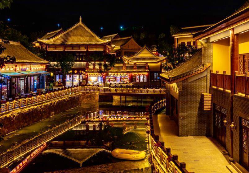 并且古镇中的建筑,还吸纳了金元明清时期我国建筑的精华,桥楼榭亭设计精巧、古朴厚重、典雅大气,还有一条清澈的河水穿镇而过,让游人体验到秦淮河边的古老风情。并且景区内还为游客贴心设置餐饮区和休息区,以方便游客们在游乐之余,也不会过于劳累。