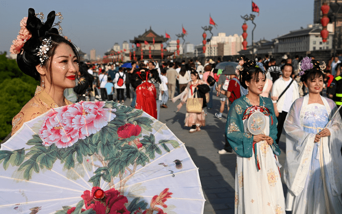 在刚结束的“五一”假期,西安旅游人气高涨,共接待游客1330.51万人次,实现旅游收入107.46亿元。根据携程发布的《2023年五一出游数据报告》,西安成为十大旅游热门目的地之一。在厚重的历史文化氛围滋养下,身着唐装汉服畅游古都正在成为西安一道亮丽的风景线。