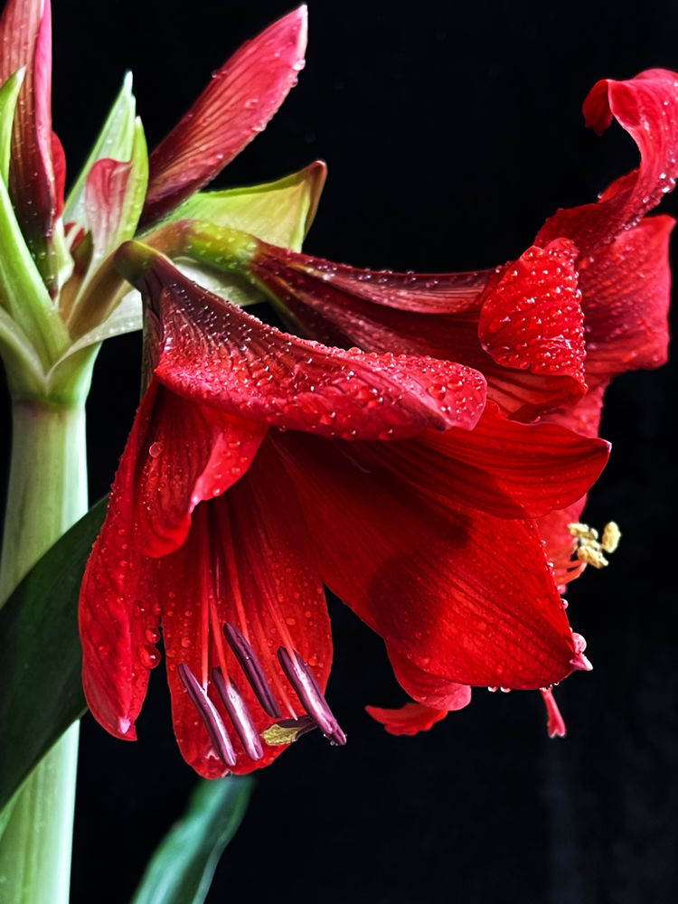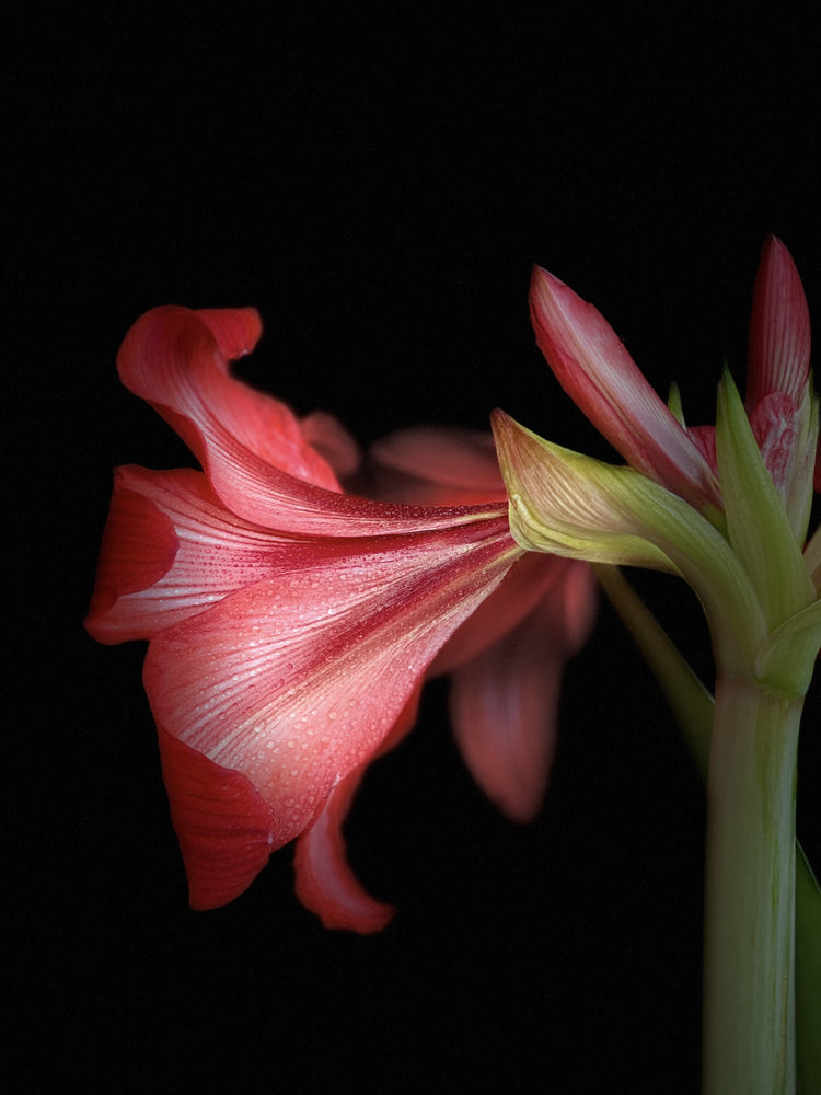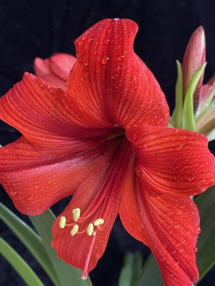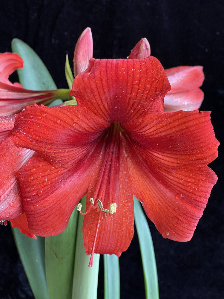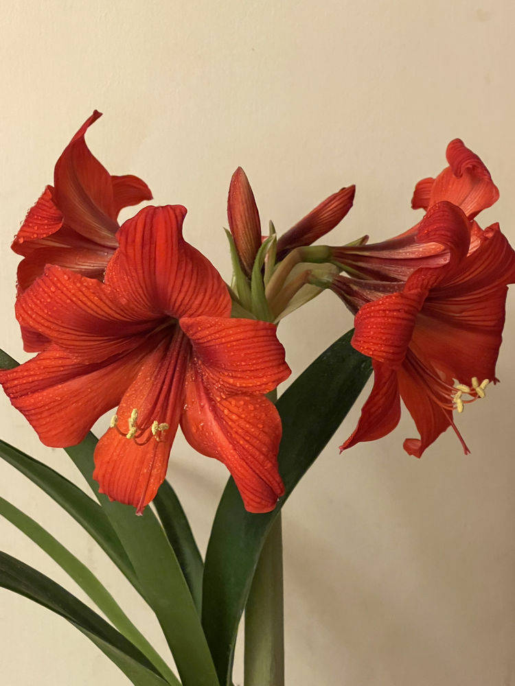 朱顶红花盛开的时候,每一片花瓣都是清晰可辨的,花瓣上的纹路脉络都清晰可见,靠近开放的花朵还有淡淡的花香。
