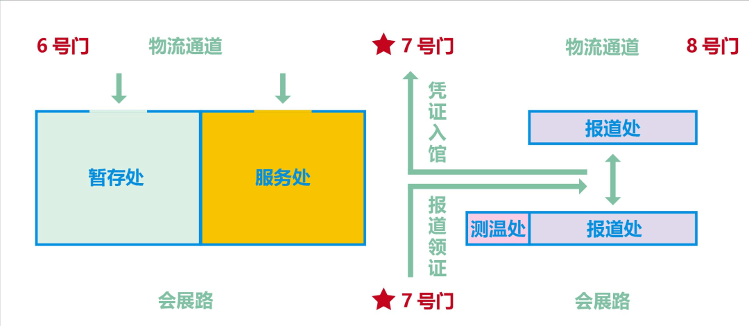 进馆提示:所有参展商凭“参展证”进入展商通道,通过7号大门,在序厅进行安检后,即可进入观景走廊参展。