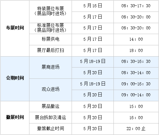*请各位展商按照时间进行展期相关工作安排,如有特殊通知将另行通知!感谢配合!