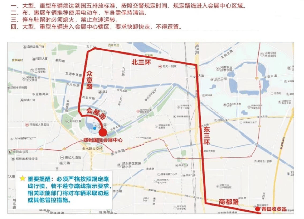 9、货车请严格按照晚10:00后早7:00前到达郑州国际会展中心布展通道。