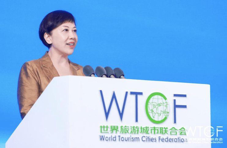 北京市副市长司马红在2023世界旅游城市联合会长沙香山旅游峰会上致辞。