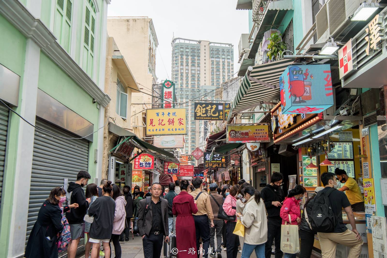 福隆新街是著名的手信街,可以买到牛肉干、花生糖、杏仁饼、虾酱等具有澳门特色的手信,游客量虽然很大,却没有大三巴街那么拥挤。