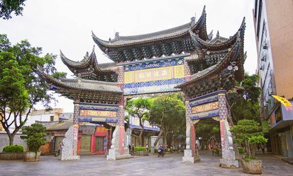 在客运站前看到一个开着有玻璃门小三轮的六旬大爷,5元钱把我送到建水古城的城脚下,眼前一亮:竟然是一个视野广阔的大广场。刚好旁边一旅游团的导游在讲解,方知建水古称临安,自古就是滇南文化重镇。