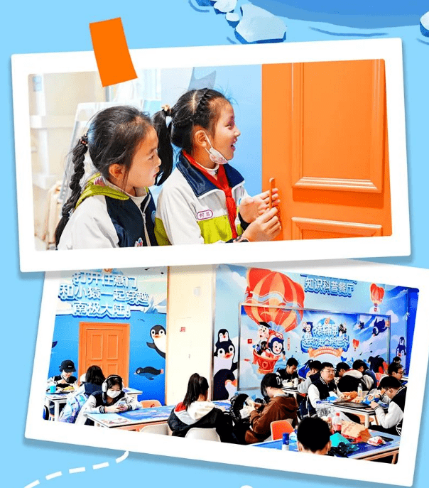 在互动体验上,餐厅内设有动物树洞、立体企鹅雕塑、任意门等多种花式互动装置,给孩子们带来别样体验。比如“任意门”,孩子们每开一次门,就会看到在门后展示的不同的极地风貌与动物视频,极具趣味性与知识性。