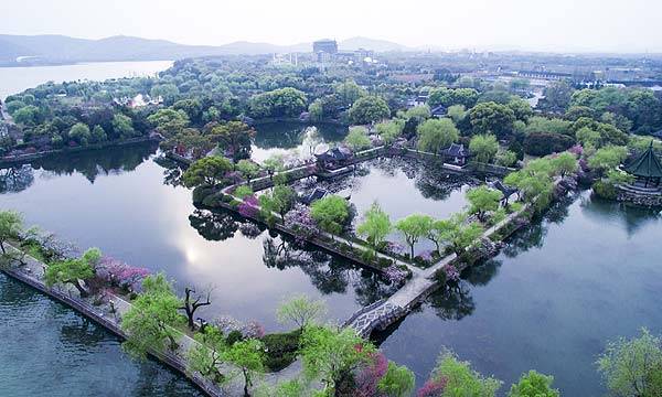 柳堤花雨是无锡著名的花堤。春天漫步在蠡园外侧的柳堤上,绿柳含翠,桃花吐艳,桃柳相间,桃红柳绿。这时,才真正体会到春风熏暖的意境。蠡园的精妙之处在于水域面积占比高,因而纵有繁花满目,却不觉得有任何冗余。春日午后,园内水面平静如镜,红的花、绿的柳倒映水面,凝视时间一长,竟然难分天地。