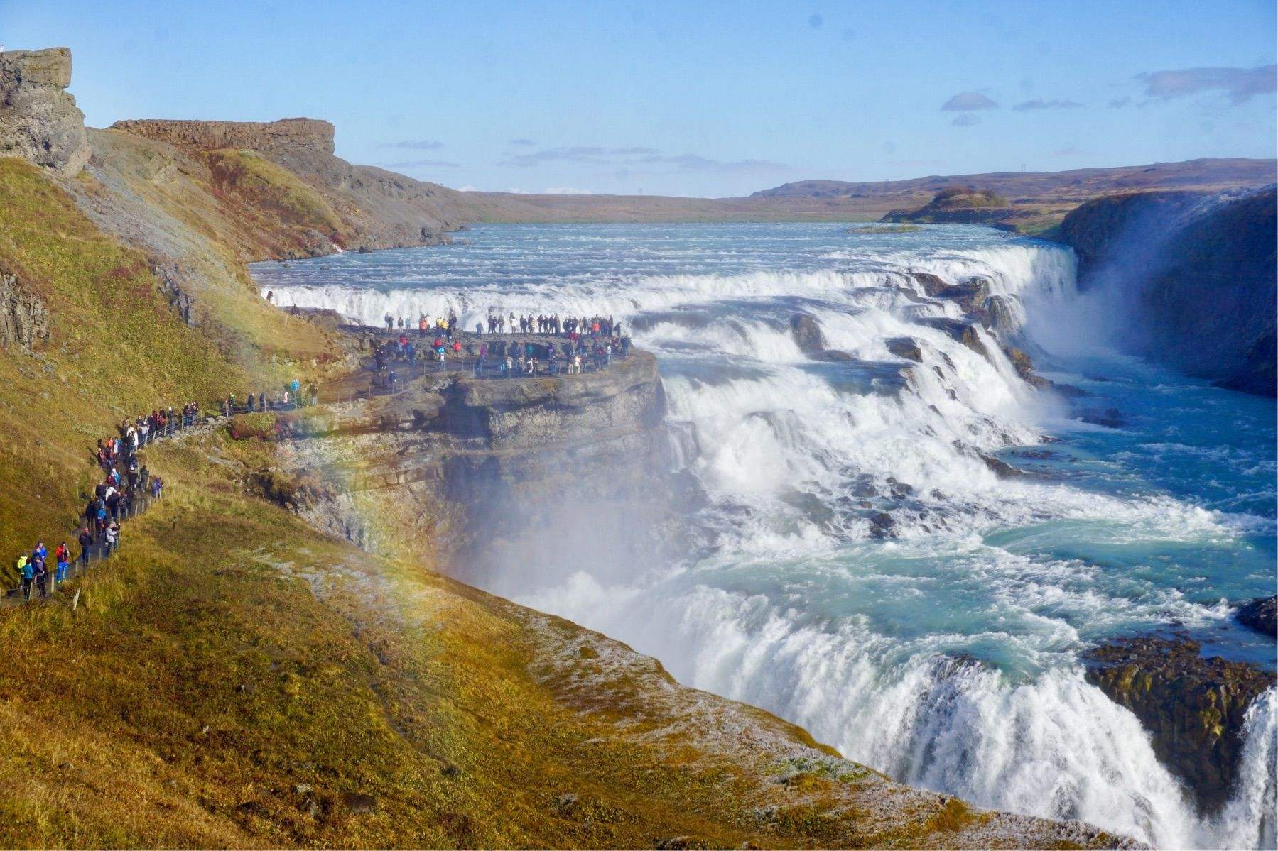 位于雷克雅未克东北约110公里处,是“黄金圈”中最著名的景点之一,断层瀑布宽约2500米,其水势分成两段,总高差70多米。