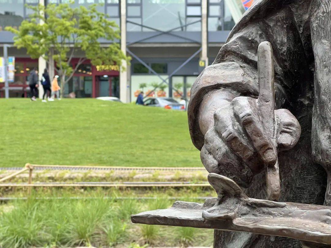 点一串羊肉串,吃上刚上市的西瓜,穿着复古服饰,漫步在大草坪上,不远处伫立着工人艺术雕塑,重现着货运集装箱堆场工人劳动场景。