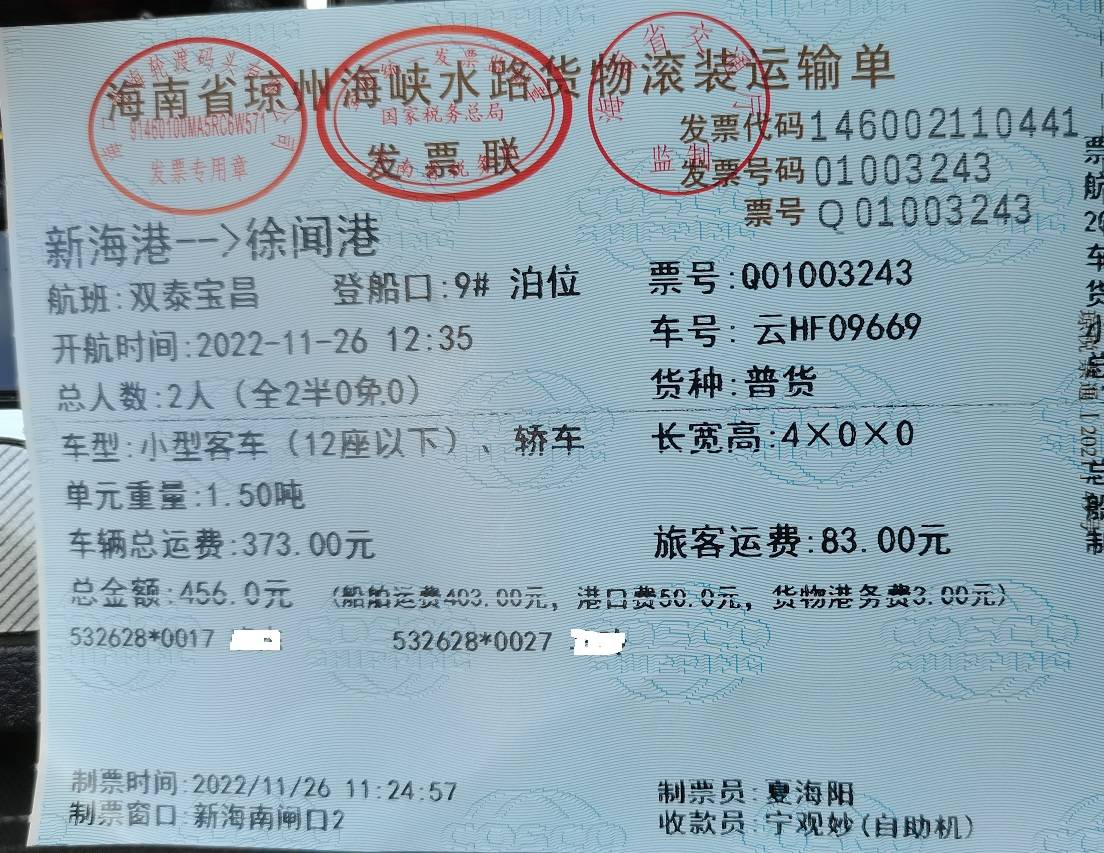 11月26日中午在海口新海港登船回家了。