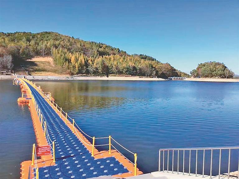 位于锅盔山景区入口处的日月湖,它们因形状而得名,一个如弯弯的新月,一个如圆圆的太阳,在蓝天白云下,刚柔并济,相得益彰。桥倚碧水,波光潋滟。漫步在九曲桥上,感受着弯曲带来的乐趣。