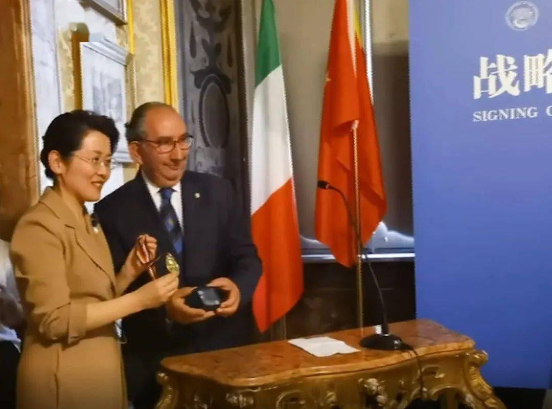 中共山东省委常委、宣传部部长白玉刚、中国驻意大利大使馆公使郑璇、拉齐奥大区议员法布里齐奥、意大利前驻华大使白达宁、意大利总理府前办公室主任卡尔罗、丝路国家摄影组织国际联盟执行主席曾毅等共同出席签约仪式