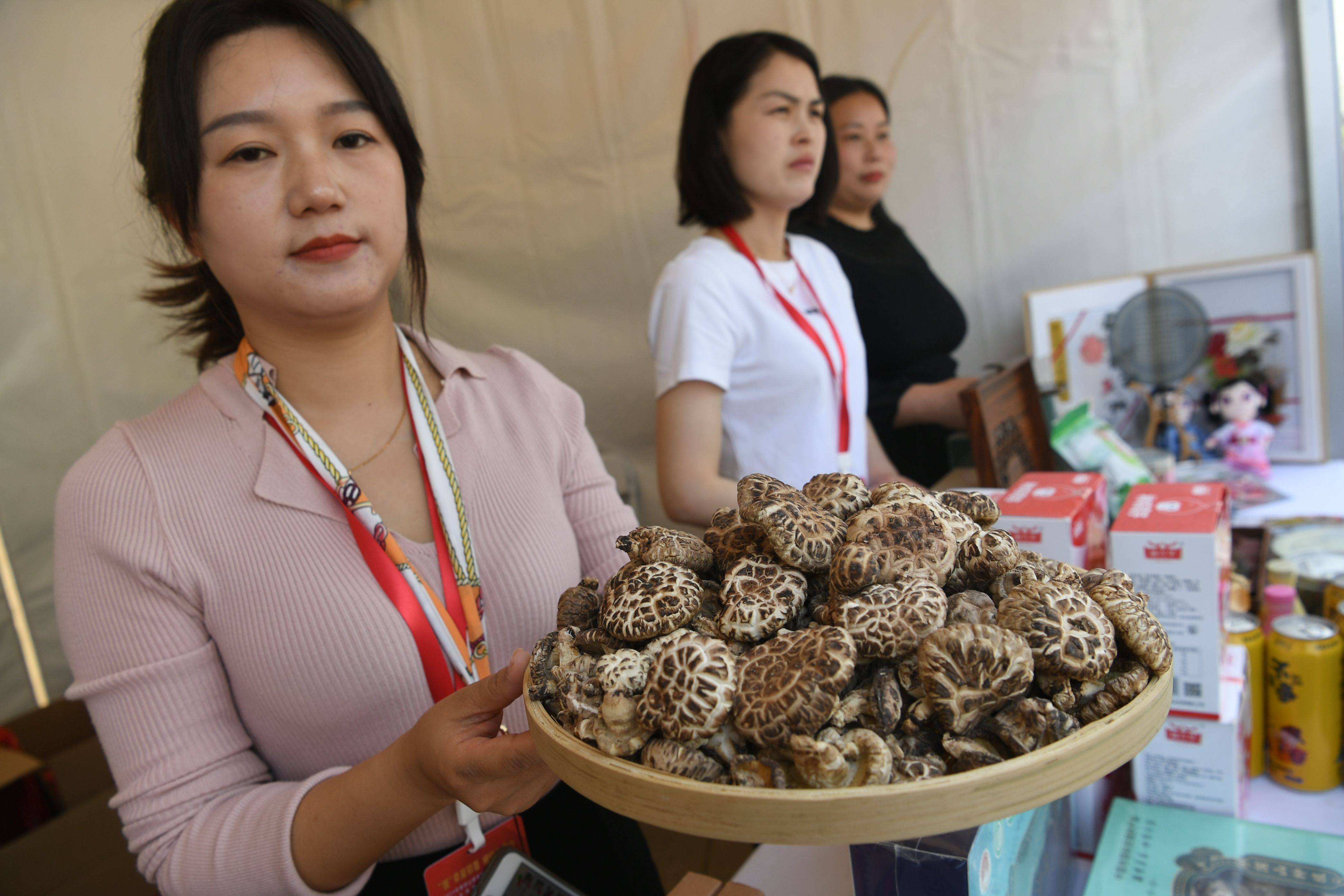 推介会上展示的花菇农特产品。新京报记者 王颖 摄