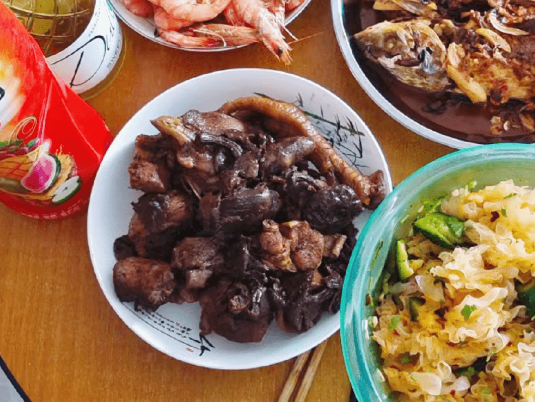 知道妹妹要回家,哥哥准备了八个菜,三道素菜五道荤菜,原本哥哥想全部亲手做,怕时间不赶趟,猪蹄买的副食,专门挑常去的副食店买的,肉多骨棒小。