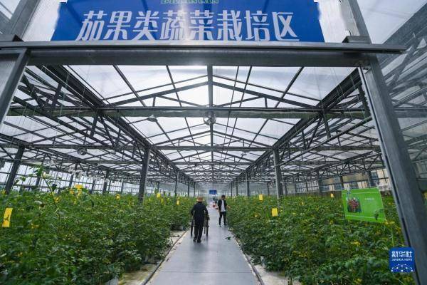 这是位于德清县洛舍镇东衡村的鱼菜共生农业园(5月8日摄)。整个鱼菜共生项目占地10000平方米,通过智能化鱼菜共生养殖系统产出菠菜、苦苣、冰草、小番茄、西瓜、甜瓜等蔬果以及澳洲宝石鲈鱼等中高端淡水鱼。