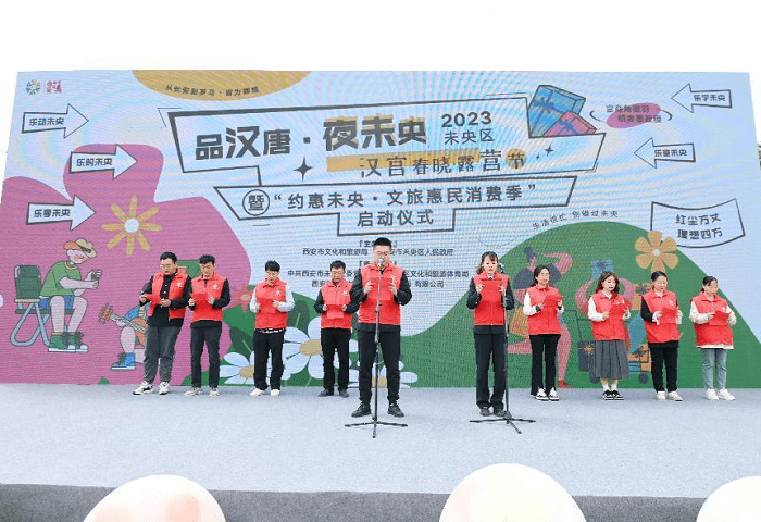 “我们倡议,文明旅游,从我做起!”4月28日,未央区“汉宫春晓露营节”暨“文旅惠民消费季”活动启动仪式在未央宫遗址公园举行,启动仪式上,来自未央区文化旅游志愿服务队的志愿者们向广大市民宣读了文明旅游倡议书,号召市民群众从自身做起,树立良好文明的礼仪风尚。