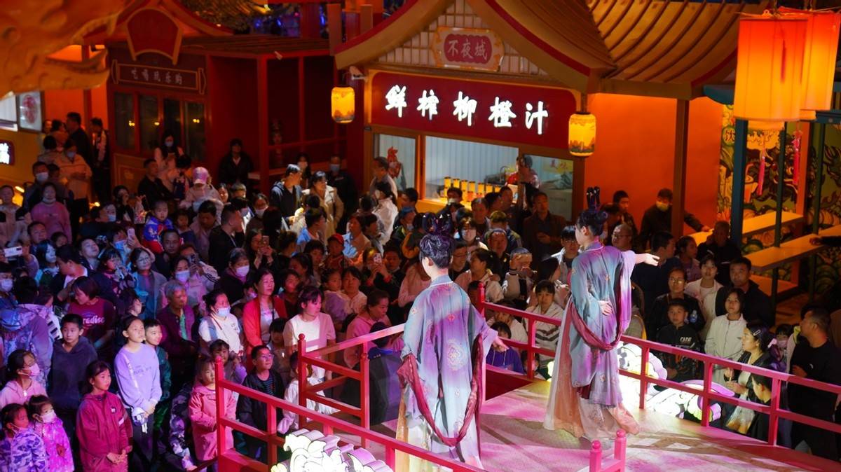 围绕青年潮文化,凤凰不夜城推出“街舞嘉年华”活动,1000多名街舞爱好者与专业街舞演员一起律动,动感的节拍,帅气十足的动作,让人忍不住跟着一起摇摆,嗨燃全场。而聚焦现代人“萌宠”生活主题,凤凰不夜城推出动物投喂活动,游客可亲自投喂羊驼、矮马、牦牛等温顺动物,传递人与自然和谐共处的理念,感受亲昵动物的单纯美好。