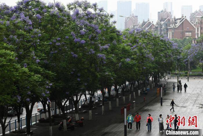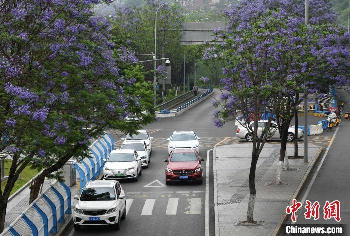 绽放的蓝花楹将重庆街道装扮成“梦幻花海”。 周毅 摄