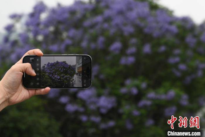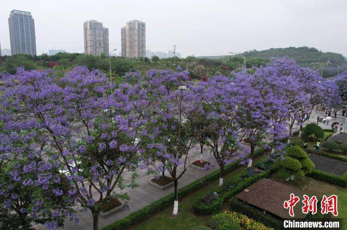 原标题:重庆街头蓝花楹绽放 市民邂逅“梦幻花海”