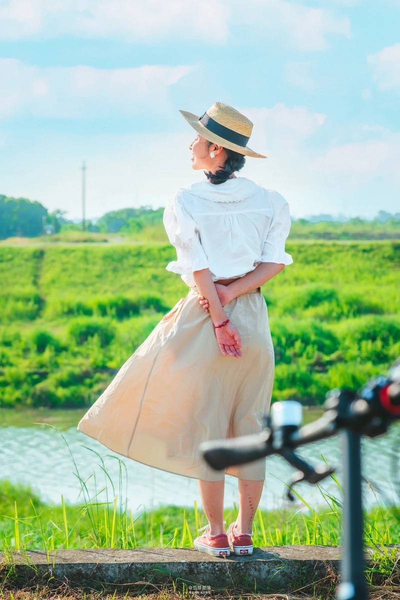 2苕溪堤坝 站在堤坝上,让你的小伙伴走下去到马路边,可以得到一张仰拍的【宫崎骏风】照片。