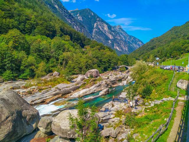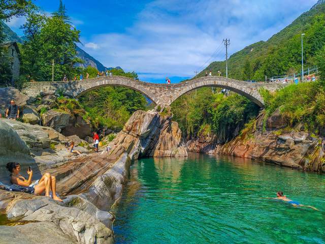 这座历史悠久的桥梁位于瑞士提契诺州(Ticino)的韦尔扎斯卡(Verzasca)山谷中,横跨着Lavertezzo河。