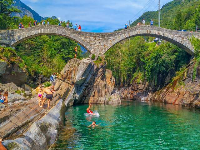 罗马桥以其跳水活动和壮丽的自然环境而成为瑞士的一大亮点。