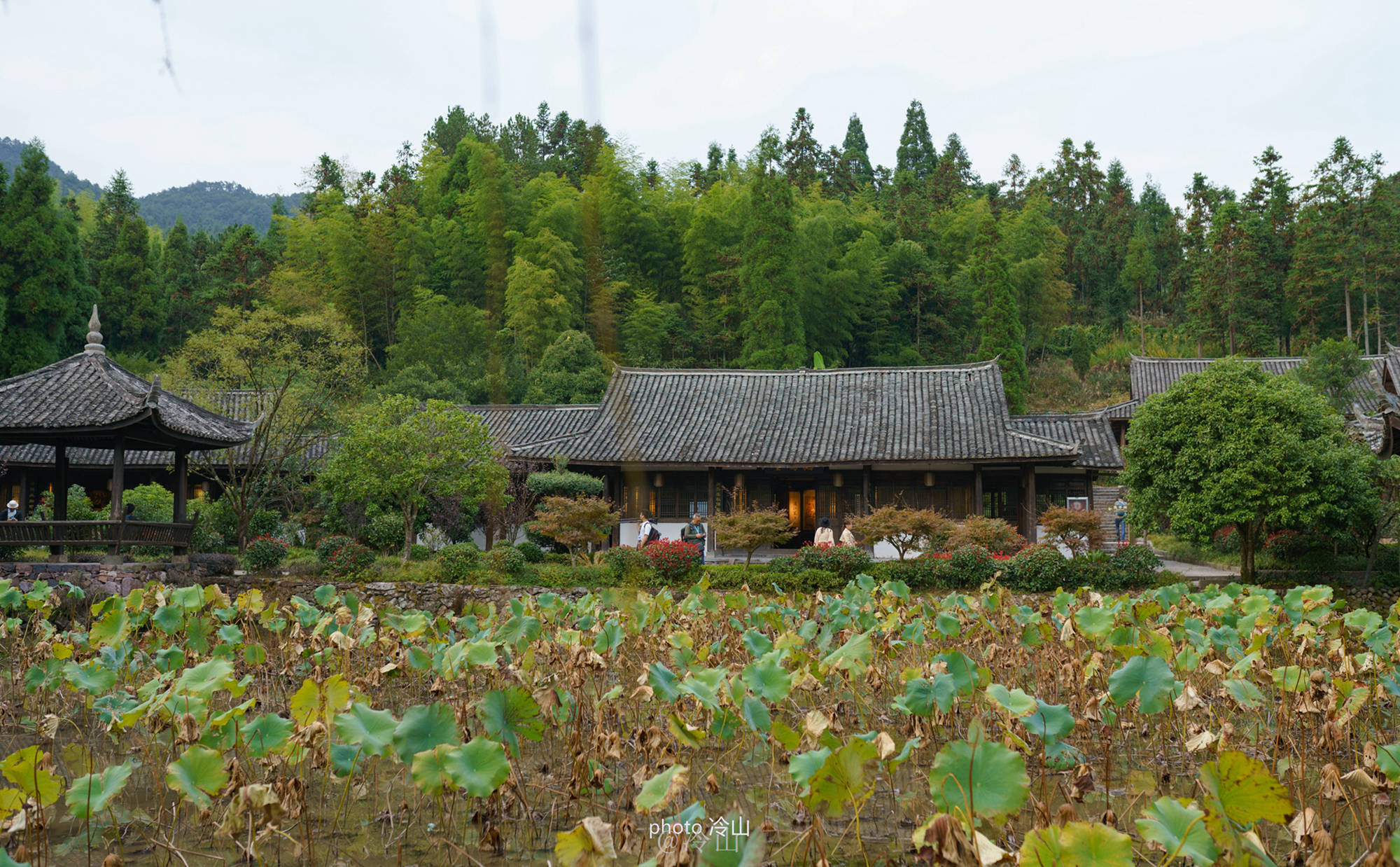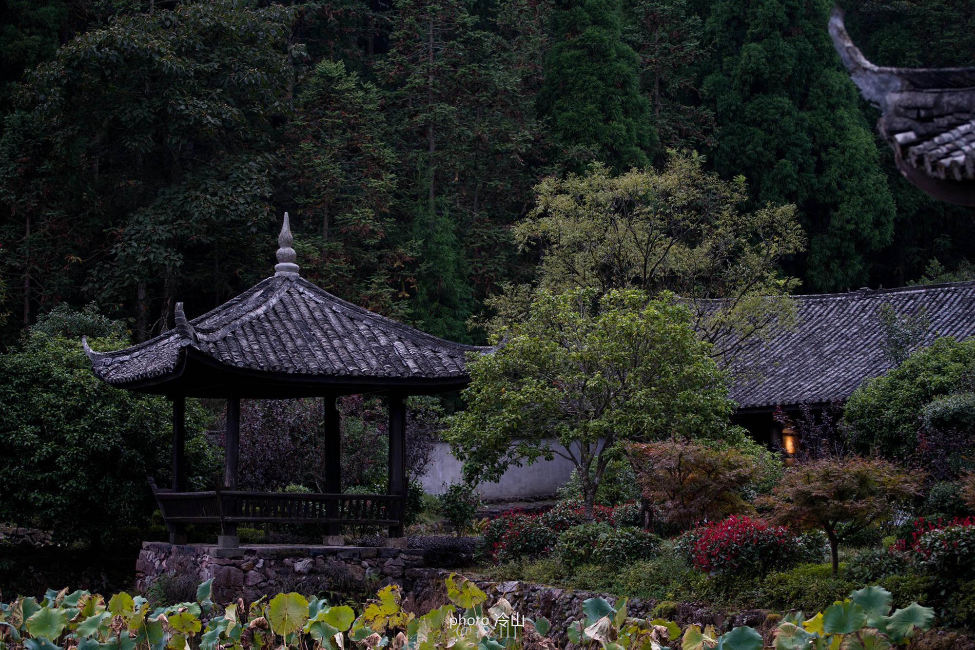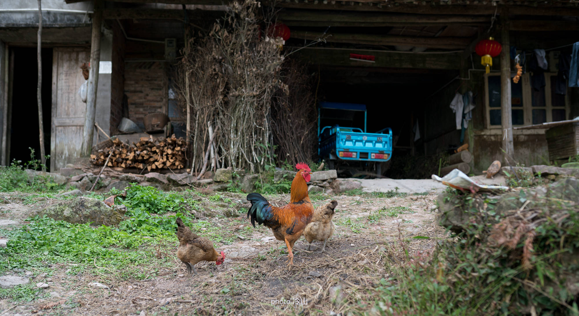 你看那八百多年的寨墙、路道、住宅、亭榭、祠庙、水池以及古柏等,处处显示出浓郁的古意。岁月给它们刻上了斑斑痕迹,墙角屋檐前的绿意却给这个古老的村落带来点点的清新气息,似乎在告诉人们,古村并未老去。