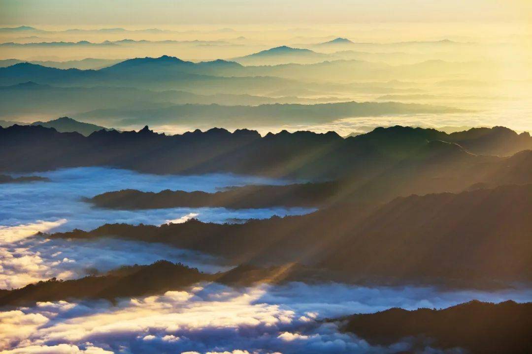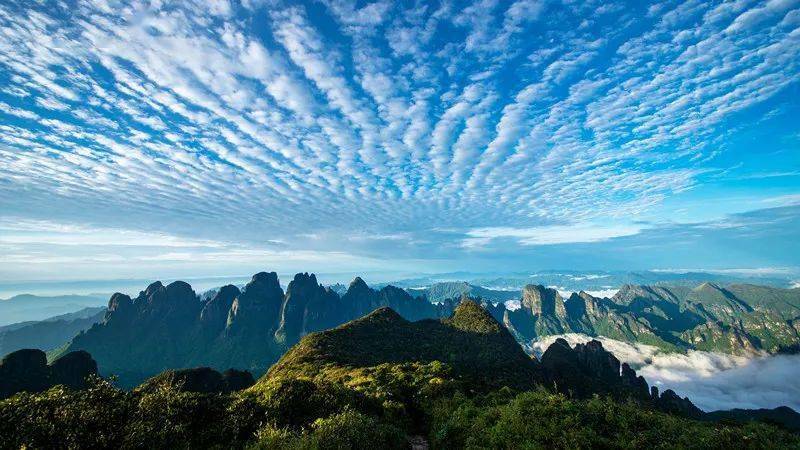 登上山顶可览巍巍群山,绿水奔腾,朱崖碧树,丹峰碧水,云海霞光。