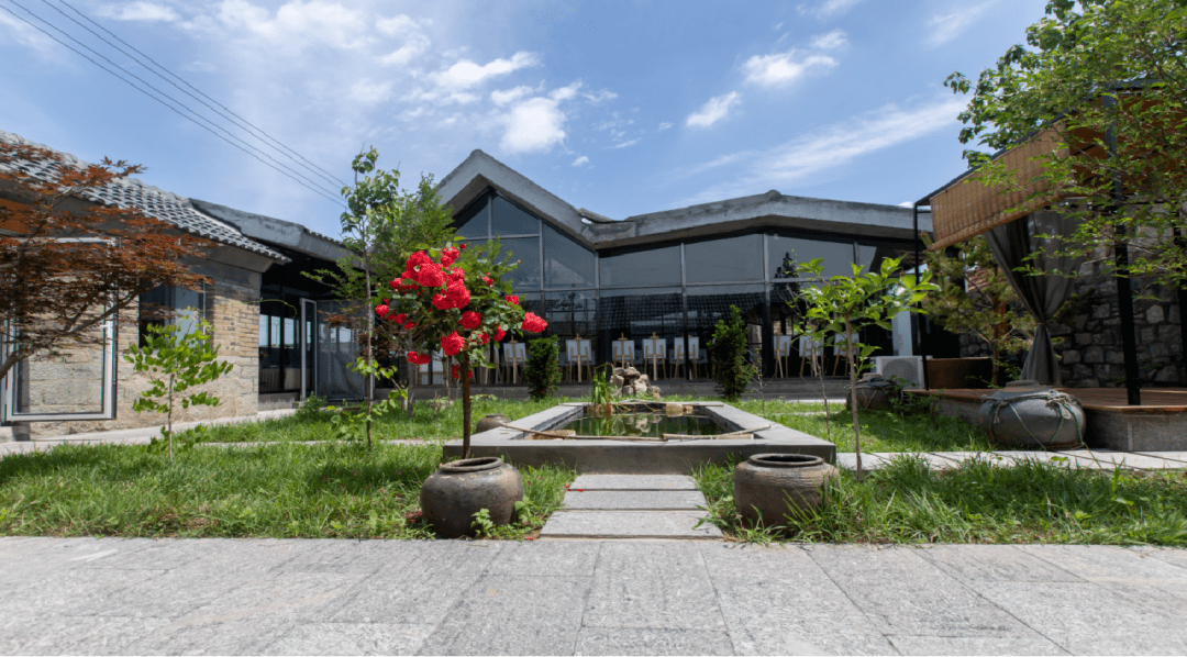 樱红石语民宿以“梅、兰、竹、菊”命名四个风格迥异的院落,设有传统土炕、壁炉客房,也有现代风格的餐厅、会议厅和书法绘画创作等区域。